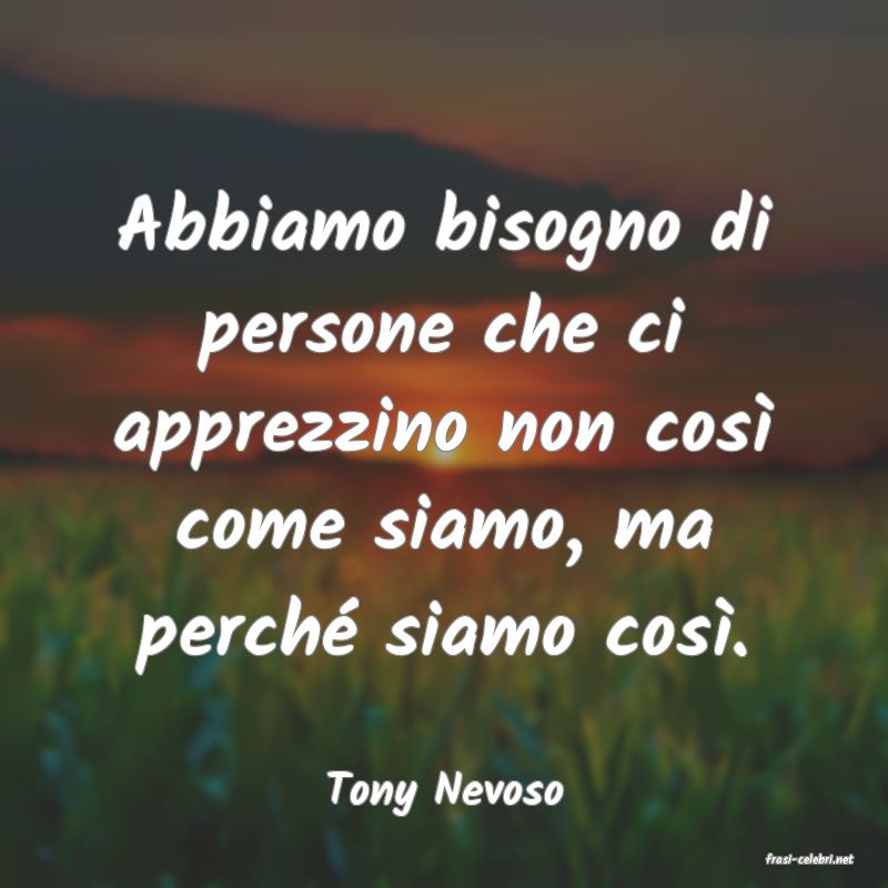 Abbiamo bisogno di persone che ci apprezzino non cos� come siamo, ma perch� siamo cos�.