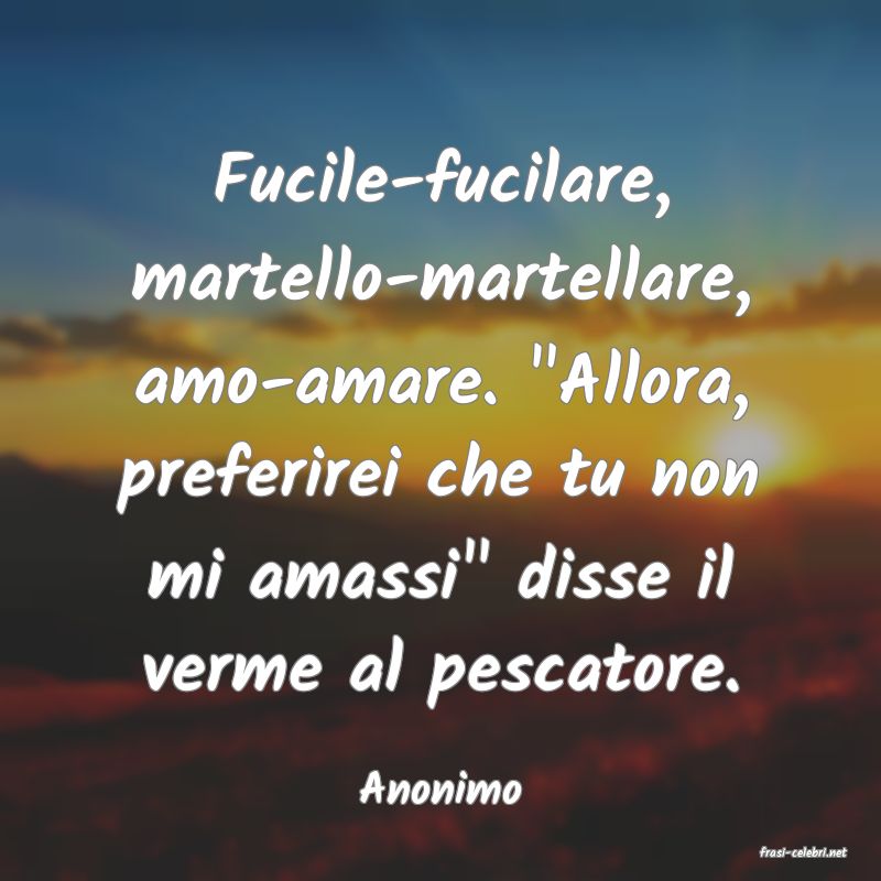 Fucile-fucilare, martello-martellare, amo-amare. "Allora, preferirei che tu non mi amassi" disse il verme al pescatore.