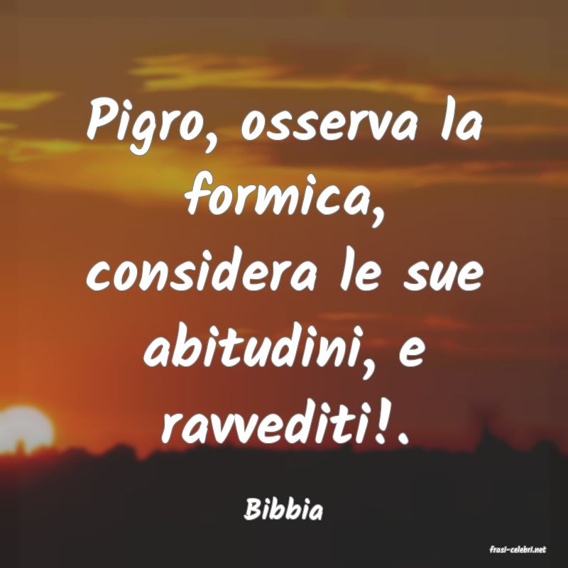Pigro, osserva la formica, considera le sue abitudini, e ravvediti!.