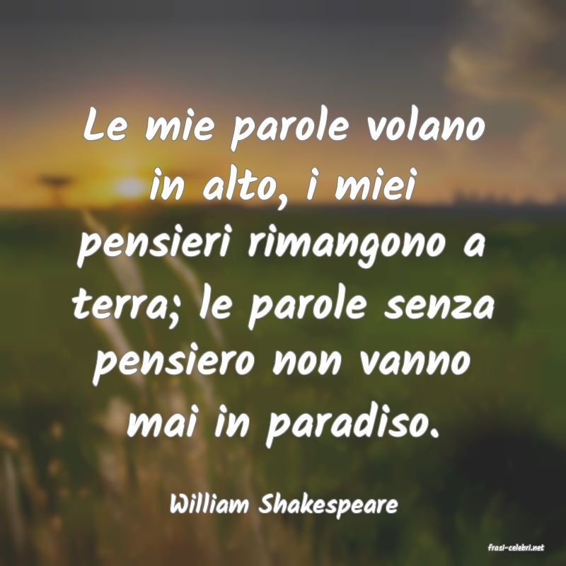 Le mie parole volano in alto, i miei pensieri rimangono a terra; le parole senza pensiero non vanno mai in paradiso.