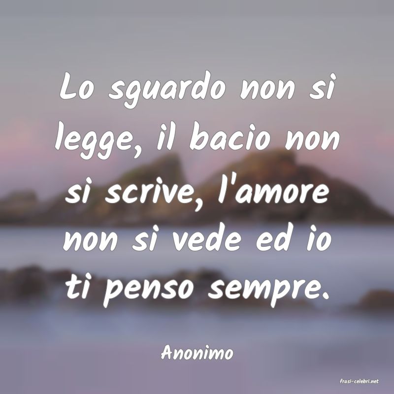 Lo sguardo non si legge, il bacio non si scrive, l'amore non si vede ed io ti penso sempre.