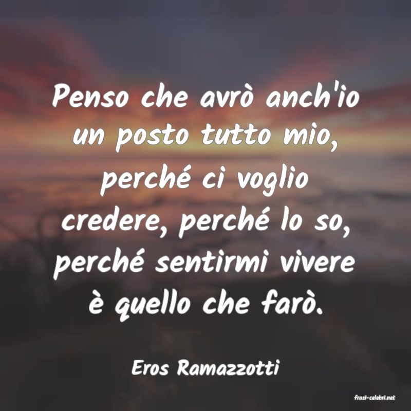 Penso che avr� anch'io un posto tutto mio, perch� ci voglio credere, perch� lo so, perch� sentirmi vivere � quello che far�.
