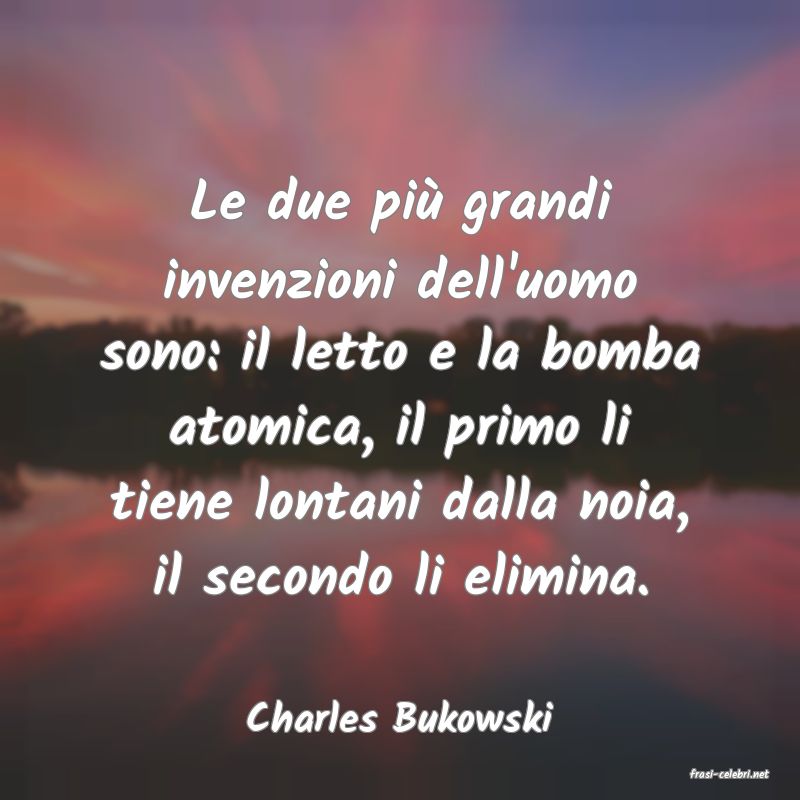 Le due pi� grandi invenzioni dell'uomo sono: il letto e la bomba atomica, il primo li tiene lontani dalla noia, il secondo li elimina.