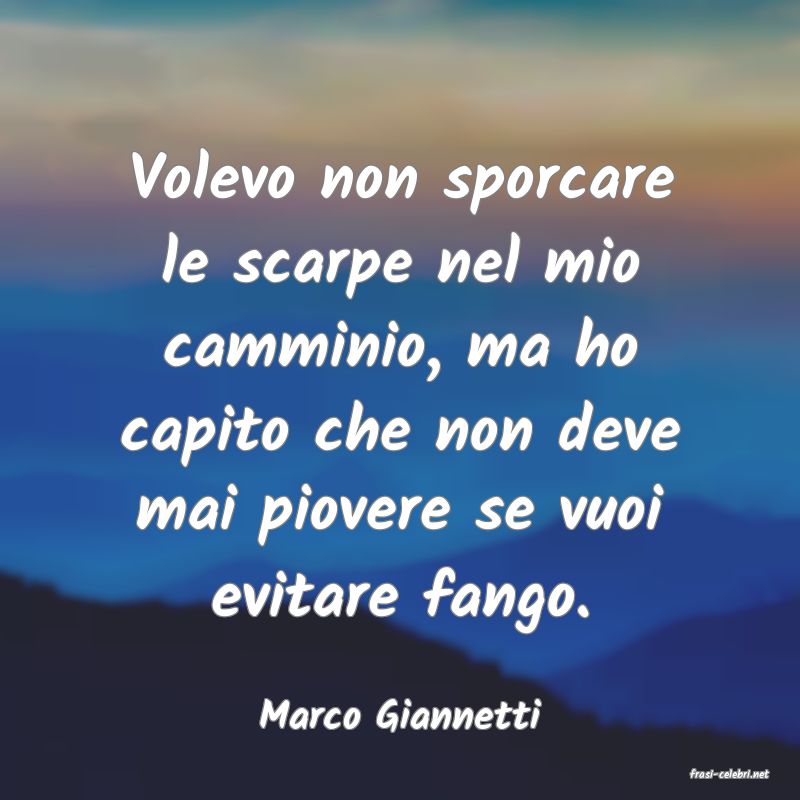 Volevo non sporcare le scarpe nel mio camminio, ma ho capito che non deve mai piovere se vuoi evitare fango.