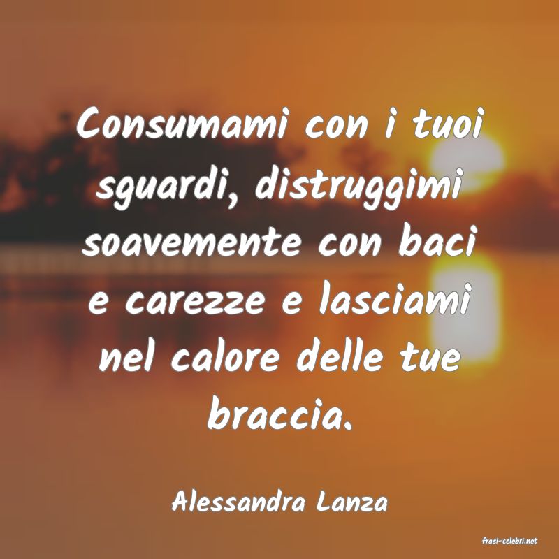 Consumami con i tuoi sguardi, distruggimi soavemente con baci e carezze e lasciami nel calore delle tue braccia.