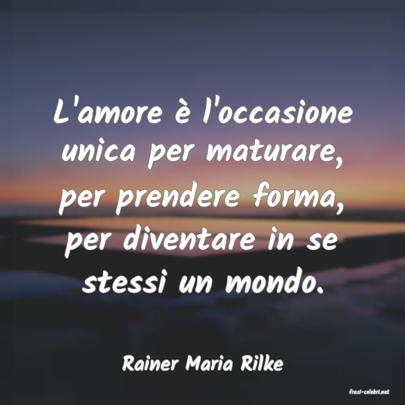 L'amore � l'occasione unica per maturare, per prendere forma, per diventare in se stessi un mondo.