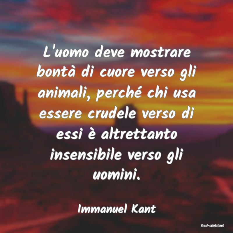 L'uomo deve mostrare bont� di cuore verso gli animali, perch� chi usa essere crudele verso di essi � altrettanto insensibile verso gli uomini.