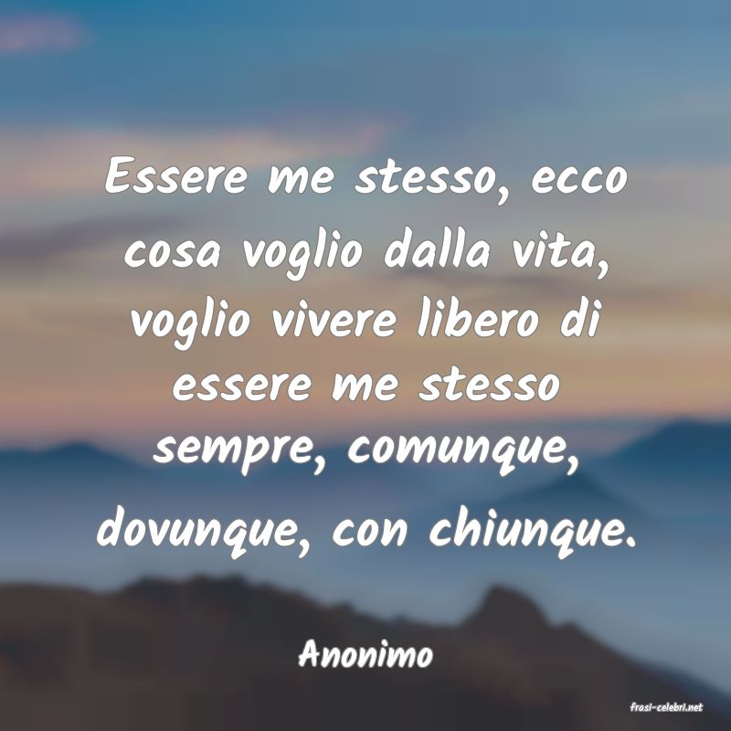 Essere me stesso, ecco cosa voglio dalla vita, voglio vivere libero di essere me stesso sempre, comunque, dovunque, con chiunque.