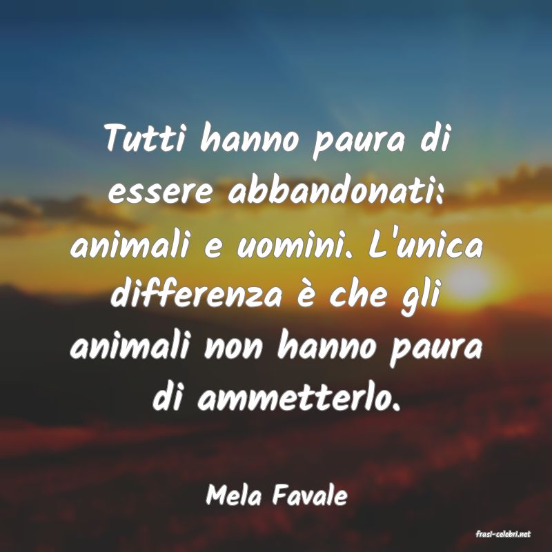 Tutti hanno paura di essere abbandonati: animali e uomini. L'unica differenza � che gli animali non hanno paura di ammetterlo. Mela Favale