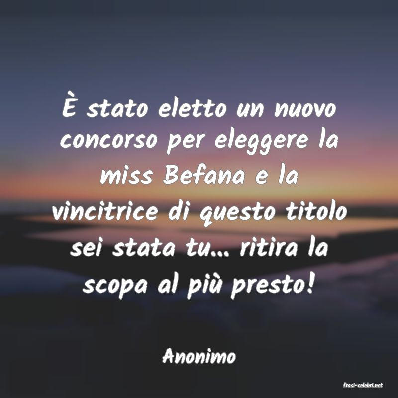� Stato eletto un nuovo concorso per eleggere la miss Befana e la vincitrice di questo titolo sei stata tu... ritira la scopa al pi� presto!