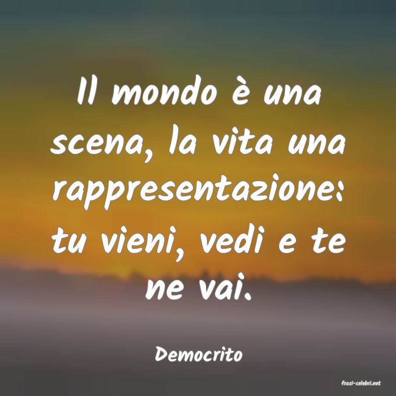 Il mondo � una scena, la vita una rappresentazione: tu vieni, vedi e te ne vai.