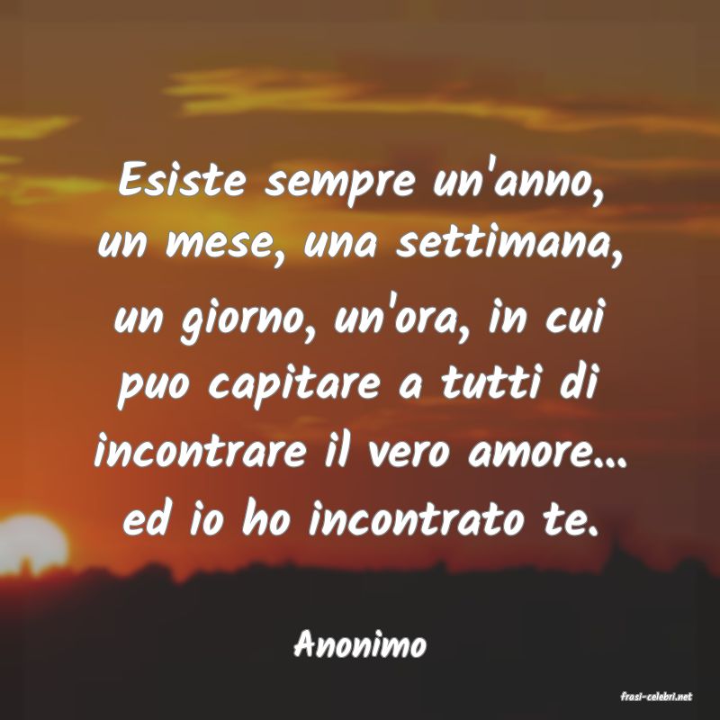 Esiste sempre un'anno, un mese, una settimana, un giorno, un'ora, in cui puo capitare a tutti di incontrare il vero amore... ed io ho incontrato te.