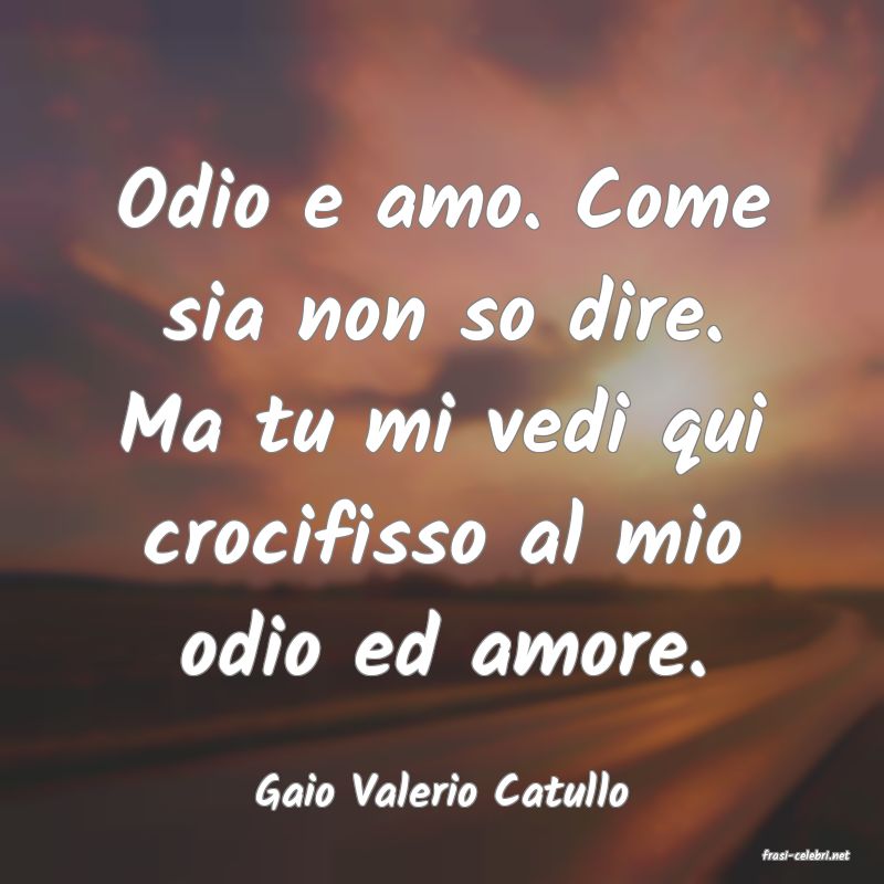Amo e odio, forse mi chiedi perch�. Non lo s� ma � cos�; me ne accorgo e mi tormento.