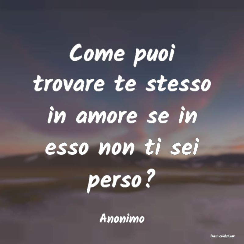 Come puoi trovare te stesso in amore se in esso non ti sei perso?