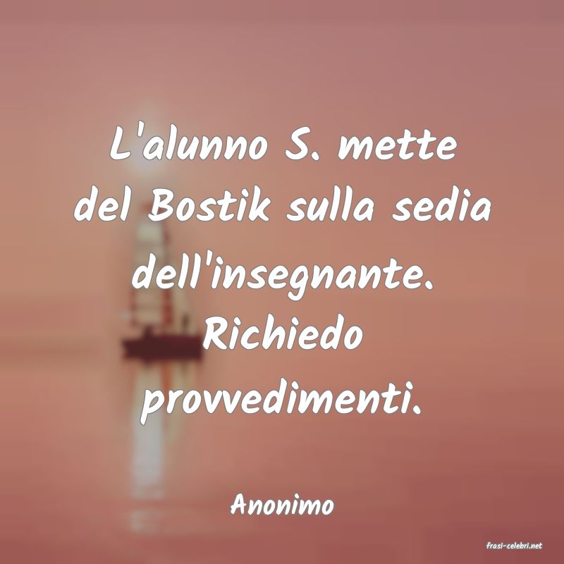 L'alunno S. mette del Bostik sulla sedia dell'insegnante. Richiedo provvedimenti.