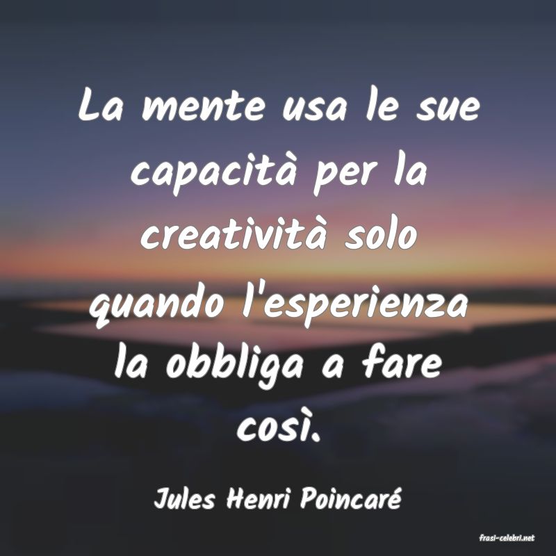 La mente usa le sue capacit� per la creativit� solo quando l'esperienza la obbliga a fare cos�. Jules Henri Poincar?