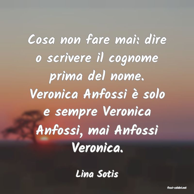 Cosa non fare mai: dire o scrivere il cognome prima del nome. Veronica Anfossi � solo e sempre Veronica Anfossi, mai Anfossi Veronica.