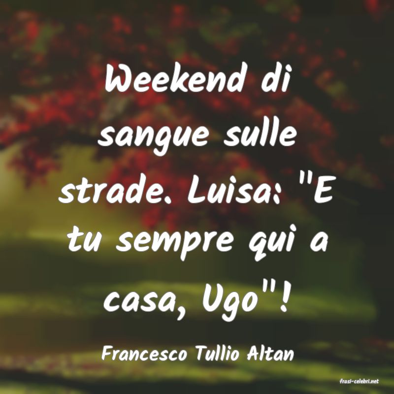 Weekend di sangue sulle strade. Luisa: "E tu sempre qui a casa, Ugo"!