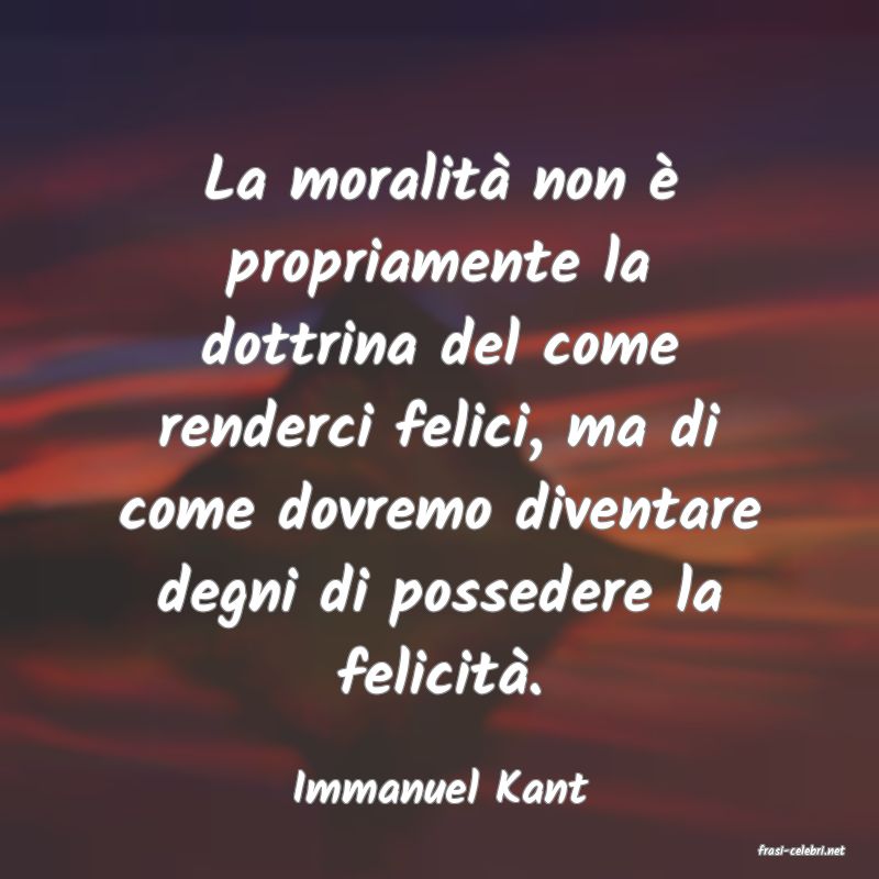 La moralit� non � propriamente la dottrina del come renderci felici, ma di come dovremo diventare degni di possedere la felicit�.