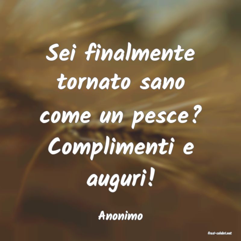 Anonimo: Sei finalmente tornato sano come un pesce? Complim