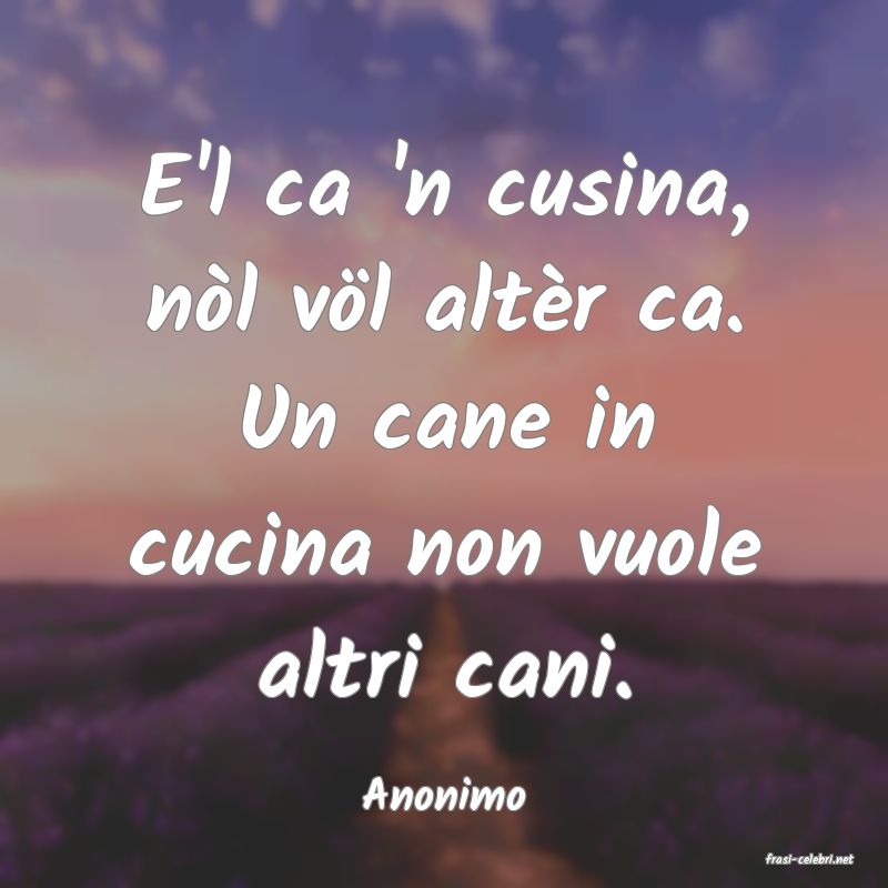 Anonimo: E'l ca 'n cusina, nòl völ altèr ca. Un cane in