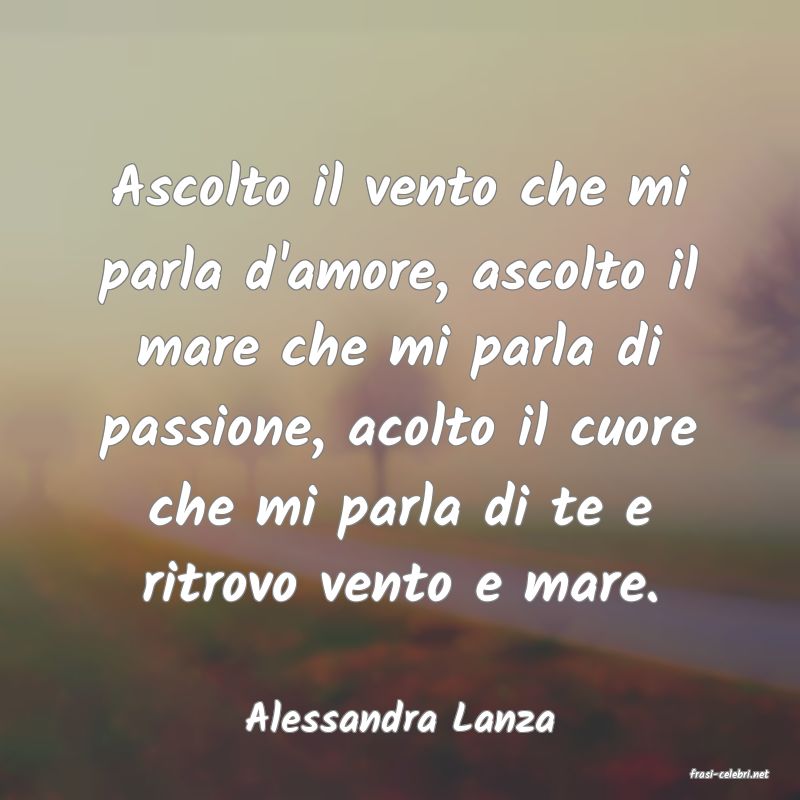Ascolto il vento che mi parla d'amore, ascolto il mare che mi parla di passione, acolto il cuore che mi parla di te e ritrovo vento e mare.