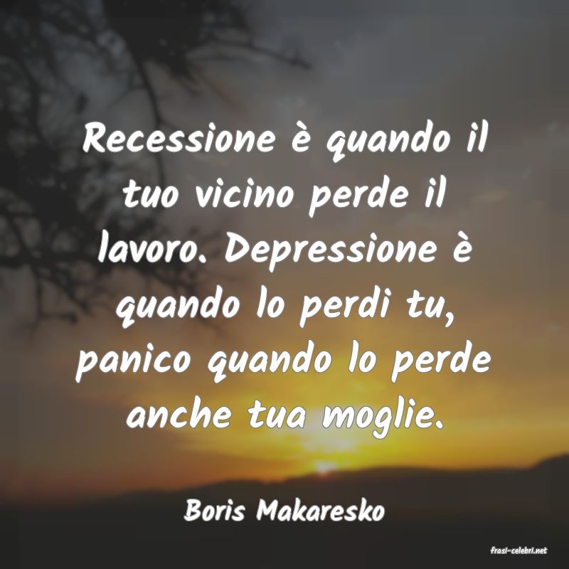 Recessione � quando il tuo vicino perde il lavoro. Depressione � quando lo perdi tu, panico quando lo perde anche tua moglie.