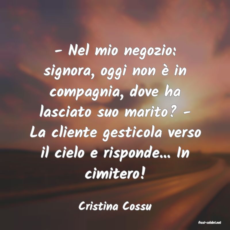 - Nel mio negozio: signora, oggi non � in compagnia, dove ha lasciato suo marito?