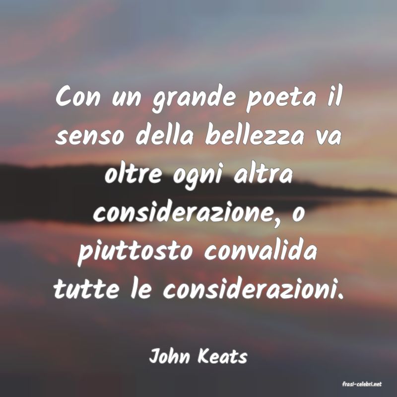 Con un grande poeta il senso della bellezza va oltre ogni altra considerazione, o piuttosto convalida tutte le considerazioni.