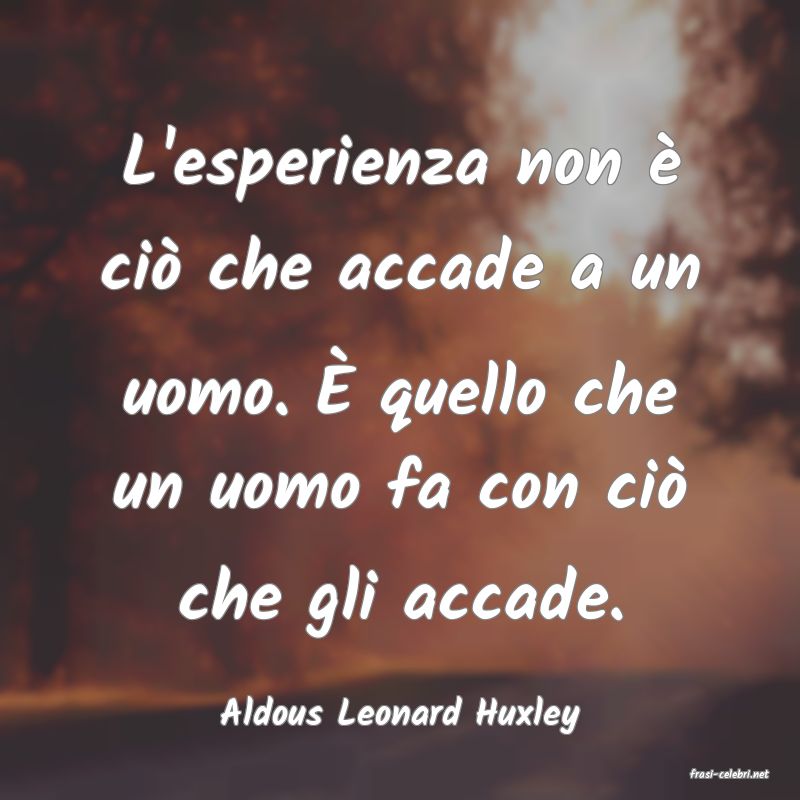 L'esperienza non � ci� che accade a un uomo. � quello che un uomo fa con ci� che gli accade.