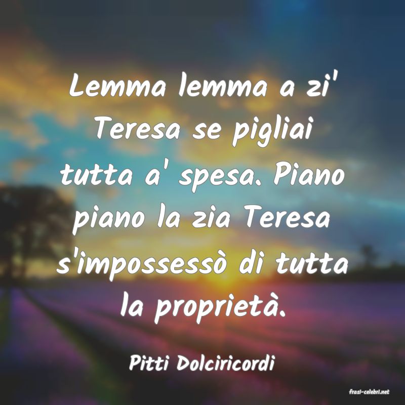 Lemma lemma a zi' Teresa se pigliai tutta a' spesa.