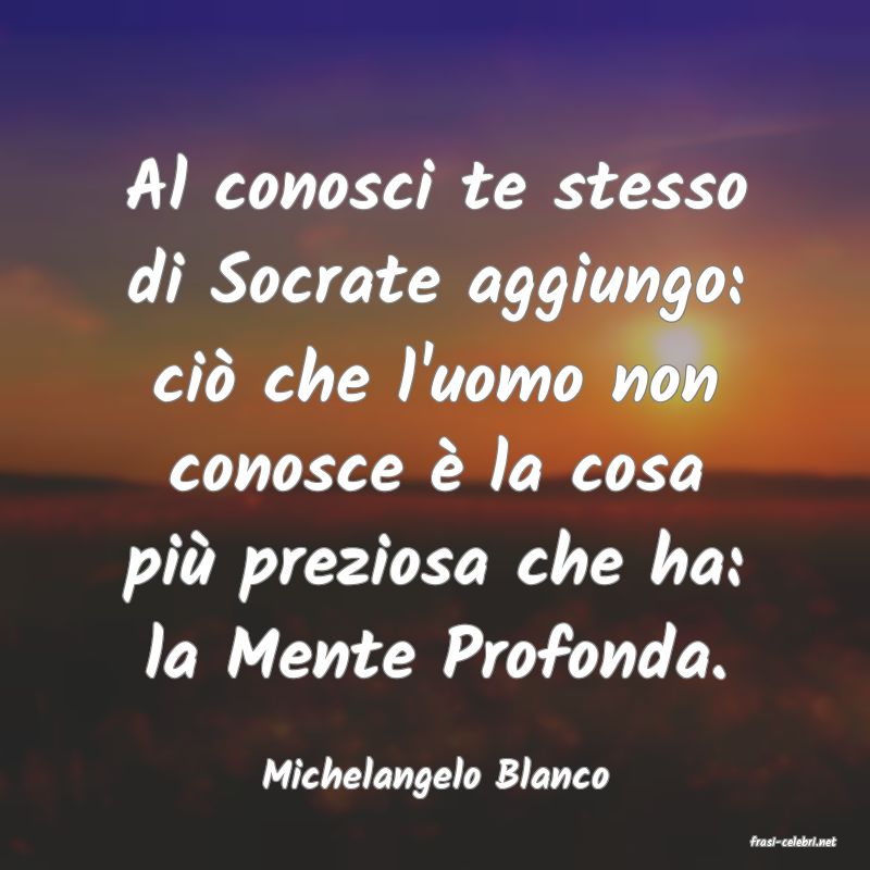 Al conosci te stesso di Socrate aggiungo: ci� che l'uomo non conosce � la cosa pi� preziosa che ha: la Mente Profonda.