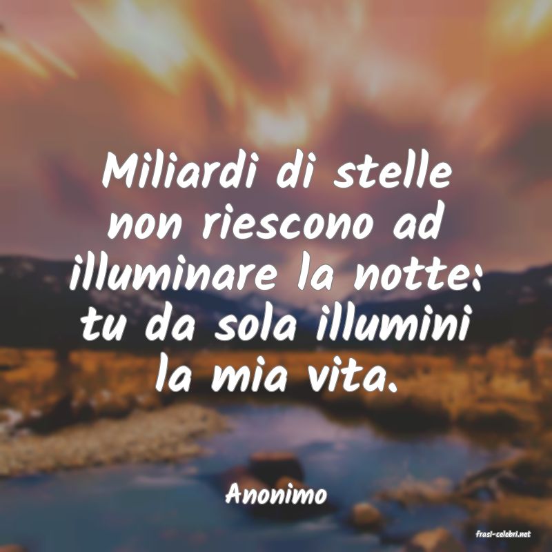 Miliardi di stelle non riescono ad illuminare la notte: tu da sola illumini la mia vita.