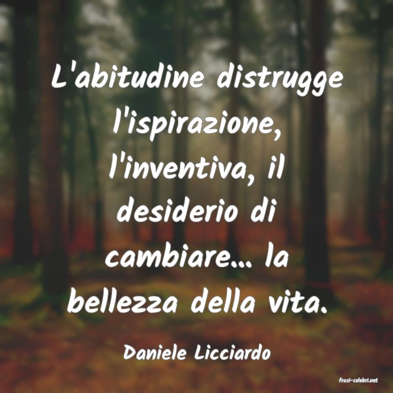 L'abitudine distrugge l'ispirazione, l'inventiva, il desiderio di cambiare... la bellezza della vita.