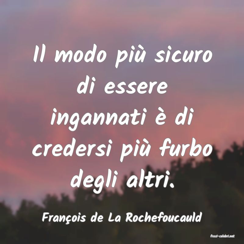 Il modo pi� sicuro di essere ingannati � di credersi pi� furbo degli altri. Fran?ois de La Rochefoucauld