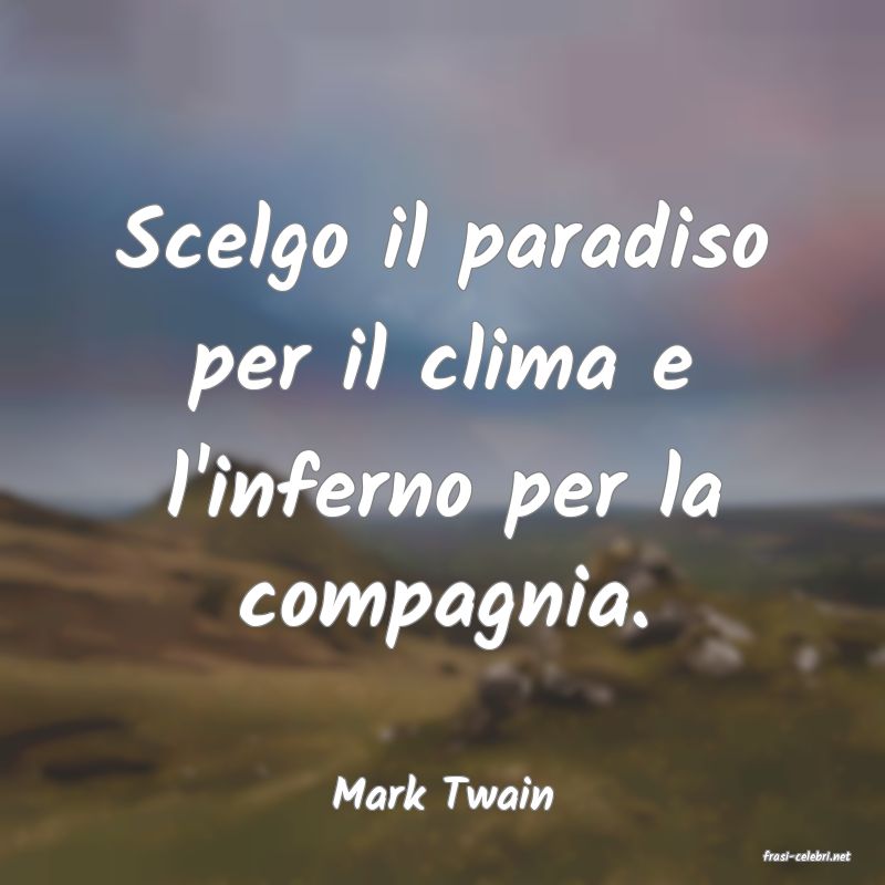Scelgo il paradiso per il clima e l'inferno per la compagnia.
