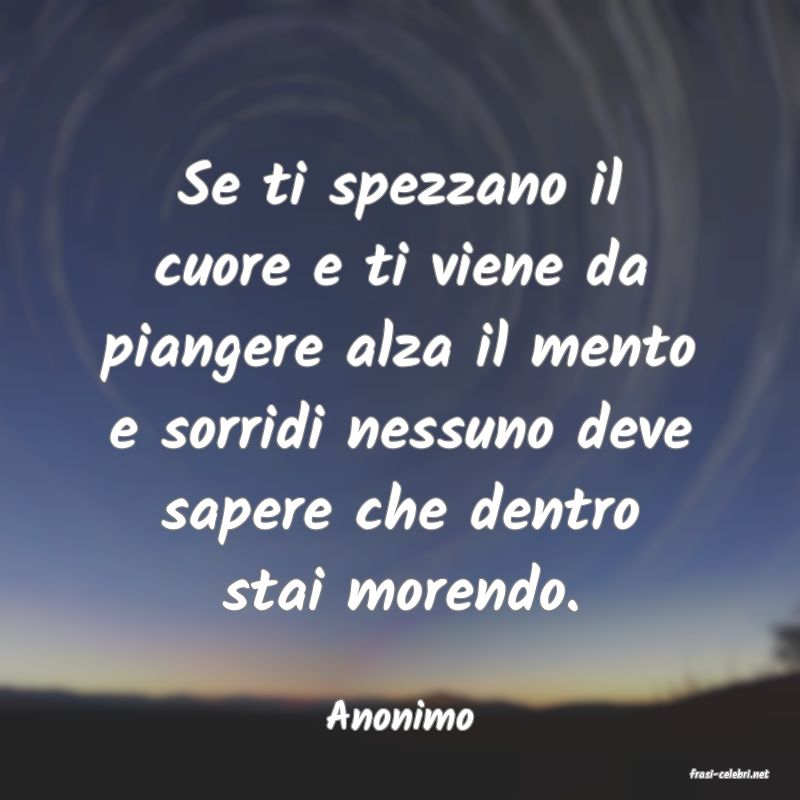 Se ti spezzano il cuore e ti viene da piangere alza il mento e sorridi nessuno deve sapere che dentro stai morendo.