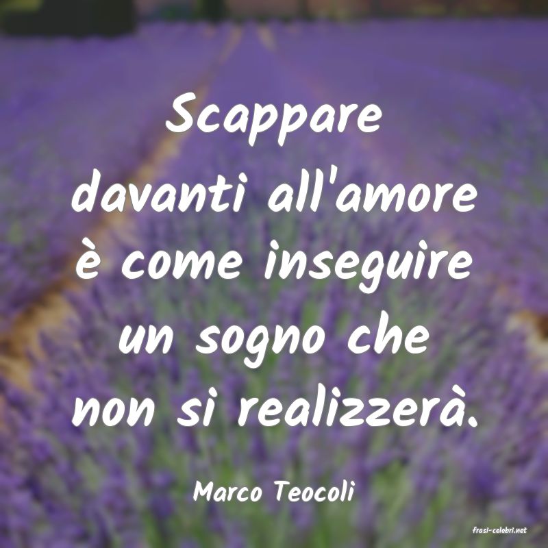 Scappare davanti all'amore � come inseguire un sogno che non si realizzer�.