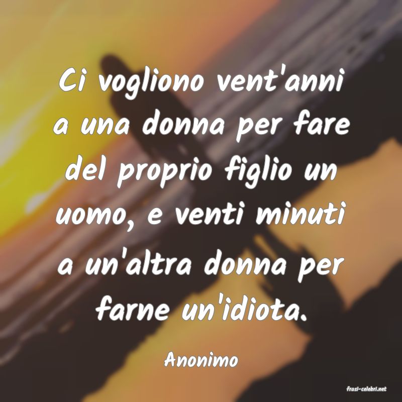 Ci vogliono vent'anni a una donna per fare del proprio figlio un uomo, e venti minuti a un'altra donna per farne un'idiota.