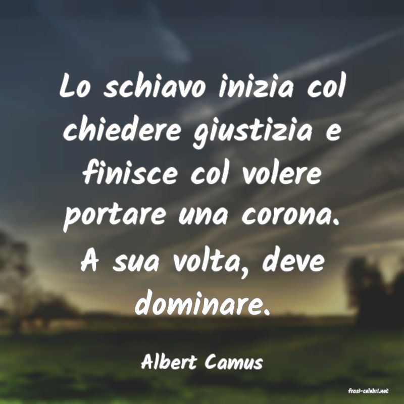 Lo schiavo inizia col chiedere giustizia e finisce col volere portare una corona. A sua volta, deve dominare.