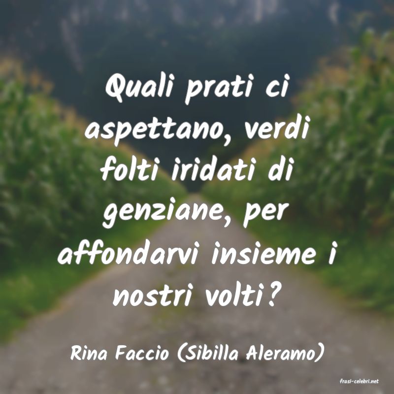 Quali prati ci aspettano, verdi folti iridati di genziane, per affondarvi insieme i nostri volti? Rina Faccio (Sibilla Aleramo)