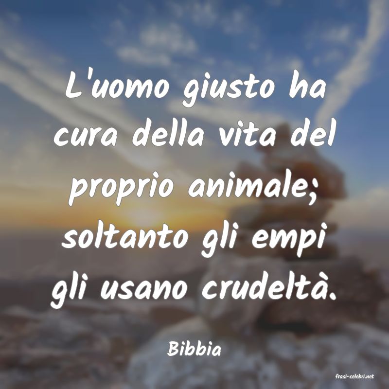 L'uomo giusto ha cura della vita del proprio animale; soltanto gli empi gli usano crudelt�.