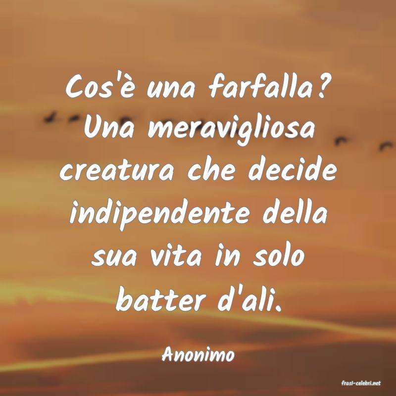 Cos'� una farfalla? Una meravigliosa creatura che decide indipendente della sua vita in solo batter d'ali.