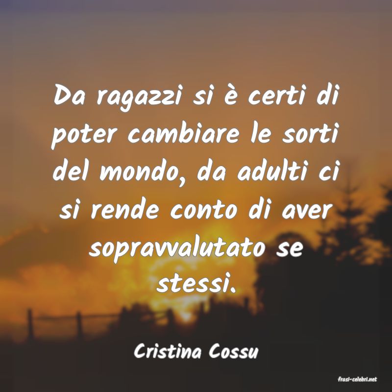 Da ragazzi si � certi di poter cambiare le sorti del mondo, da adulti ci si rende conto di aver sopravvalutato se stessi.