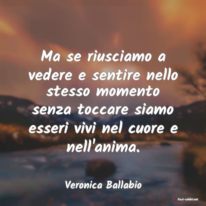 Ma se riusciamo a vedere e sentire nello stesso momento senza toccare siamo esseri vivi nel cuore e nell'anima.