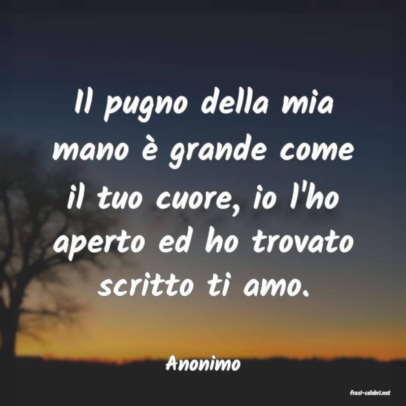 Il pugno della mia mano � grande come il tuo cuore, io l'ho aperto ed ho trovato scritto ti amo.
