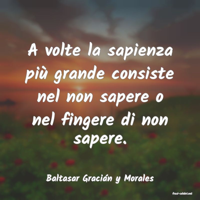A volte la sapienza pi� grande consiste nel non sapere o nel fingere di non sapere. Baltasar Graci?n y Morales