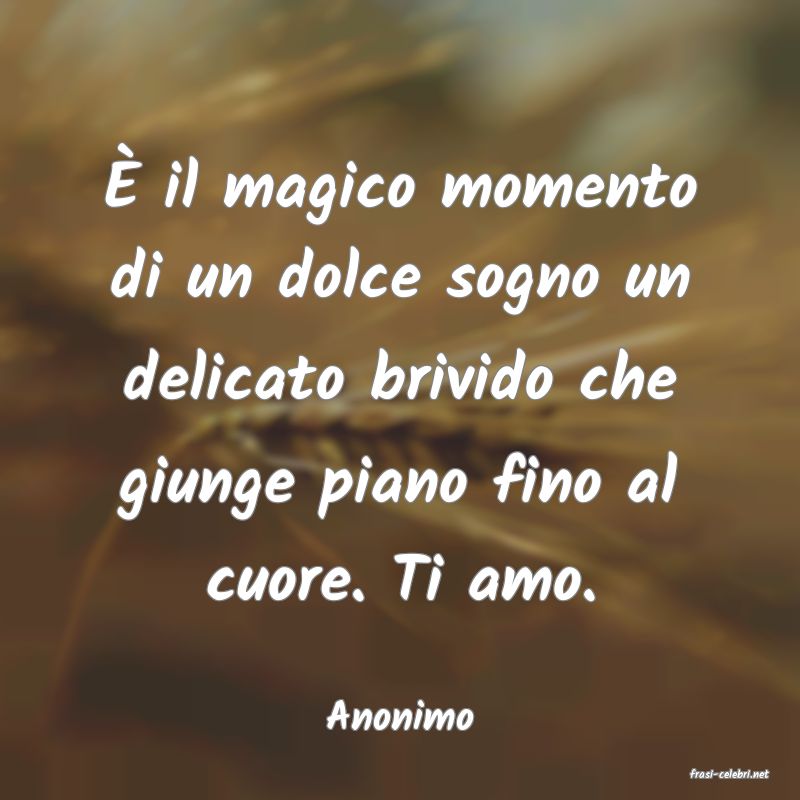 � Il magico momento di un dolce sogno un delicato brivido che giunge piano fino al cuore. Ti amo.