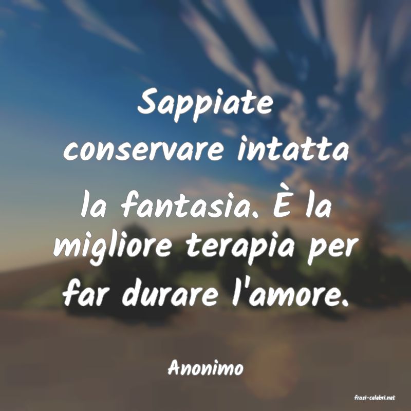 Sappiate conservare intatta la fantasia. � la migliore terapia per far durare l'amore.