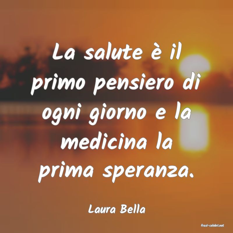 La salute � il primo pensiero di ogni giorno e la medicina la prima speranza. Laura Bella